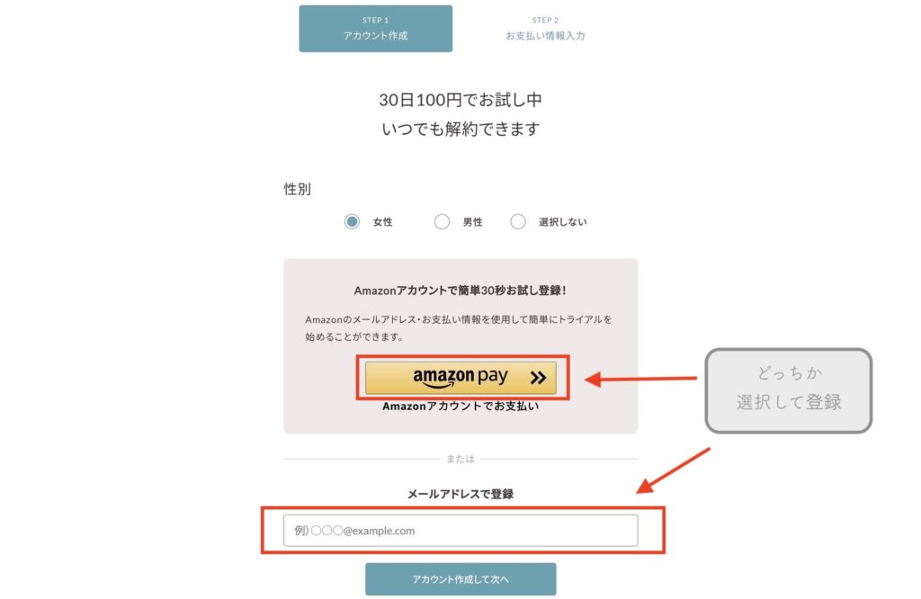 ステップ2 「100円でお試しする」を選んでアカウント登録